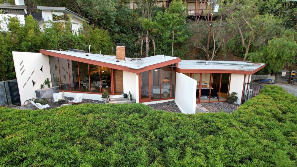 The design of the Lautner House features strategically placed windows and skylights to maximize natural light throughout the interior spaces, creating a bright and airy atmosphere.